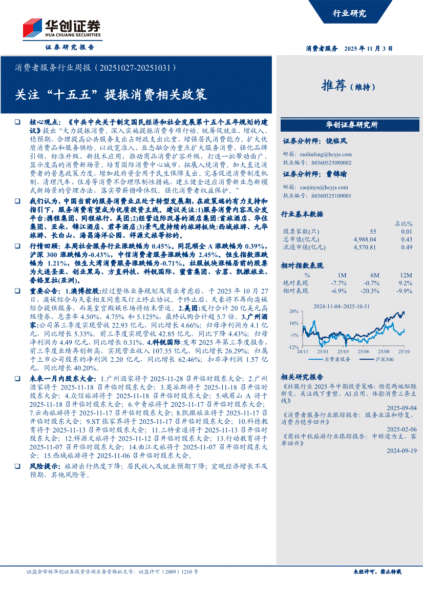 消费者服务行业:华创证券-消费者服务行业周报:关注“十五五”提振消费相关政策-251103