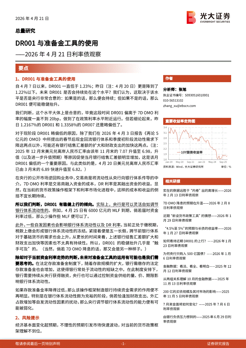 光大证券-2026年4月21日利率债观察:DR001与准备金工具的使用-260421