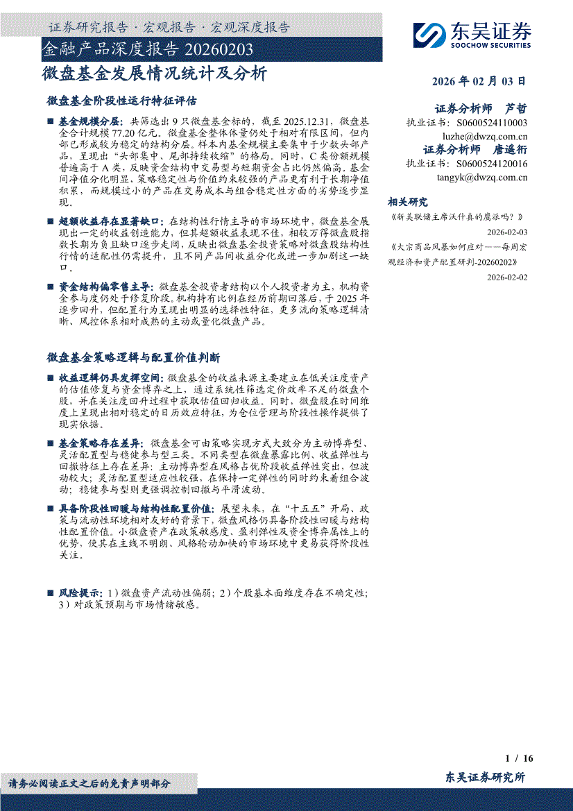 东吴证券-金融产品深度报告:微盘基金发展情况统计及分析-260203