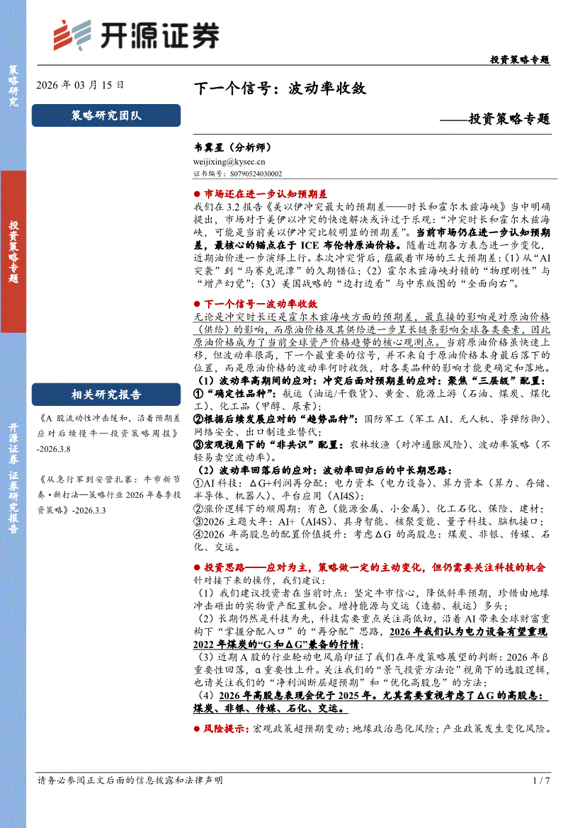 开源证券-投资策略专题:下一个信号,波动率收敛-260315