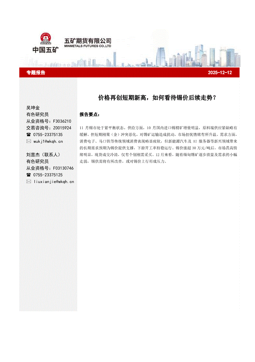 五矿期货-价格再创短期新高,如何看待锡价后续走势?-251212