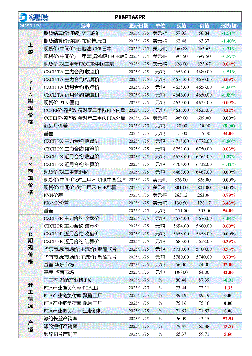 宏源期货-能源化工周报—PX&PTA:市场情绪降温,短期震荡整理-251208