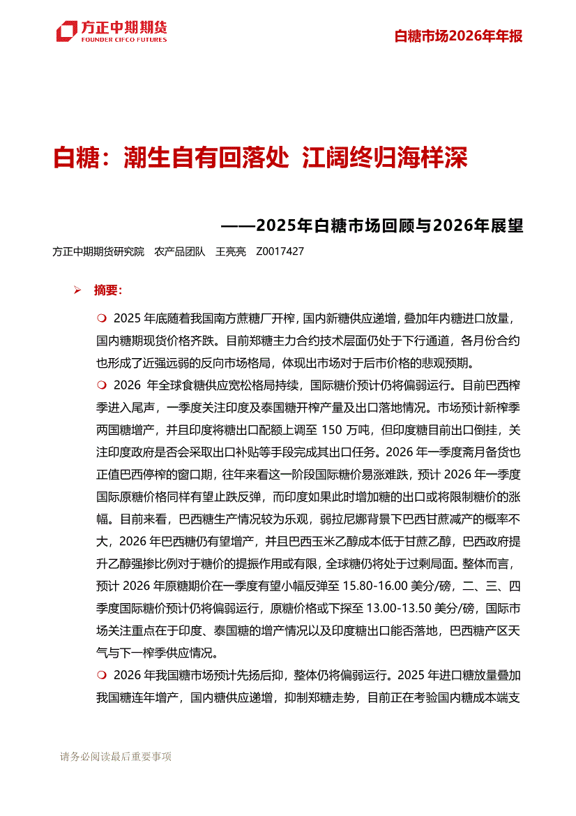 方正中期期货-白糖:潮生自有回落处,江阔终归海样深-251215