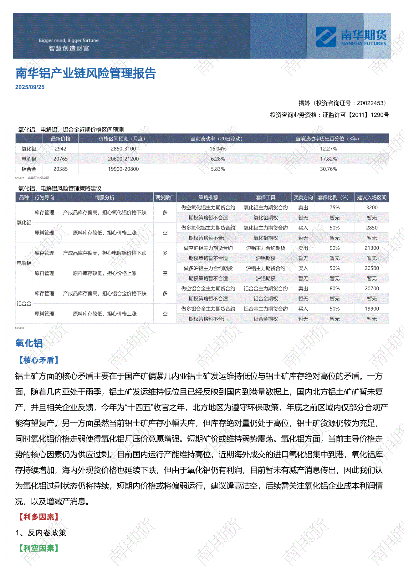 南华期货-铝产业链周报:氧化铝基本面未改,逢高沽空为主-251116