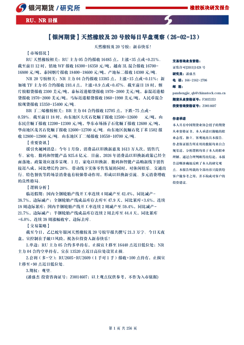 银河期货-天然橡胶及20号胶每日早盘观察-260213