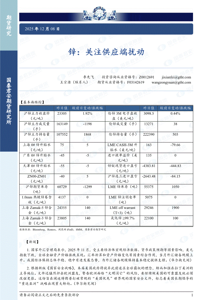 国泰君安期货-铅:库存减少,支撑价格-251215
