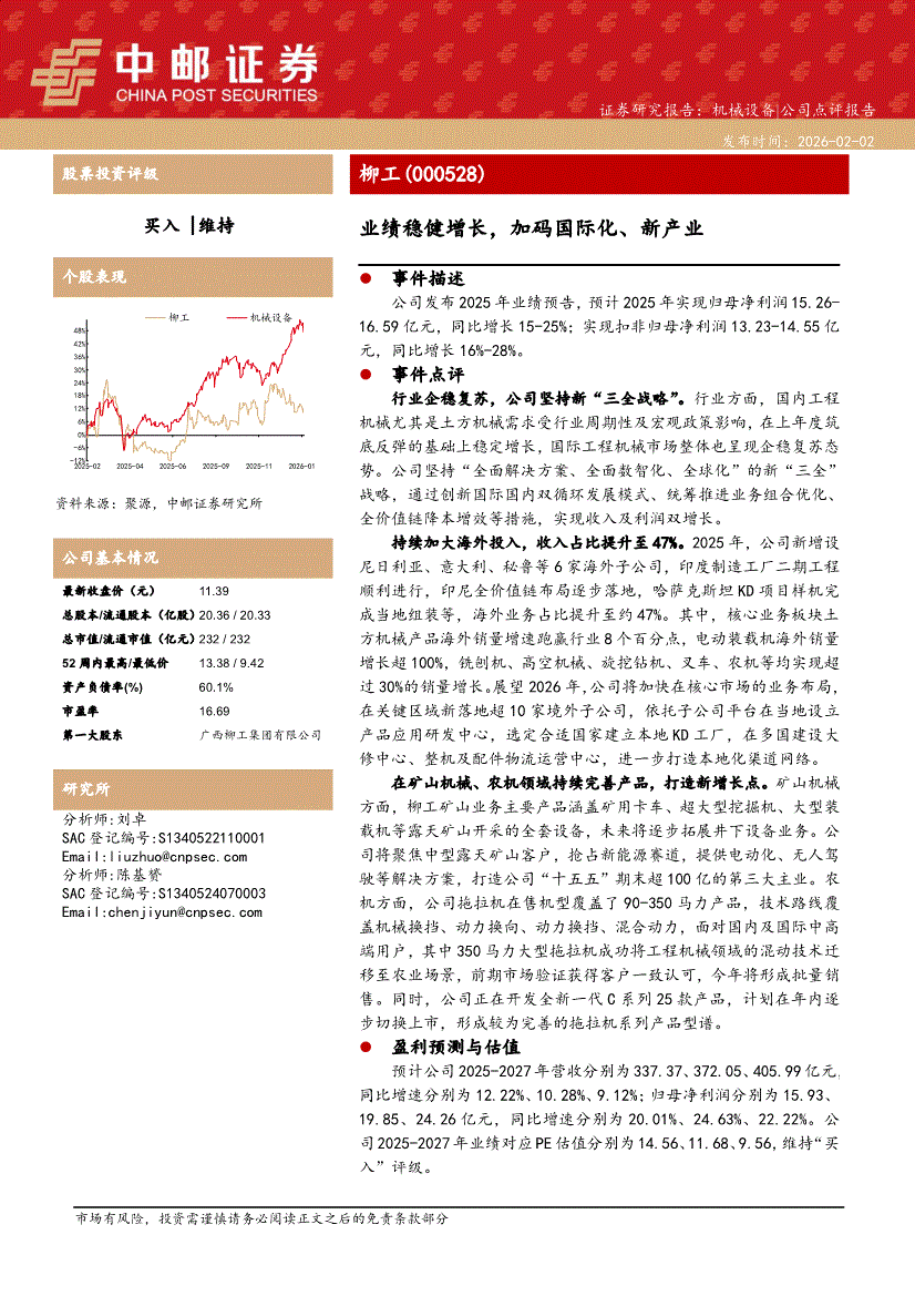 柳工:中邮证券-柳工-000528-业绩稳健增长,加码国际化、新产业-260202