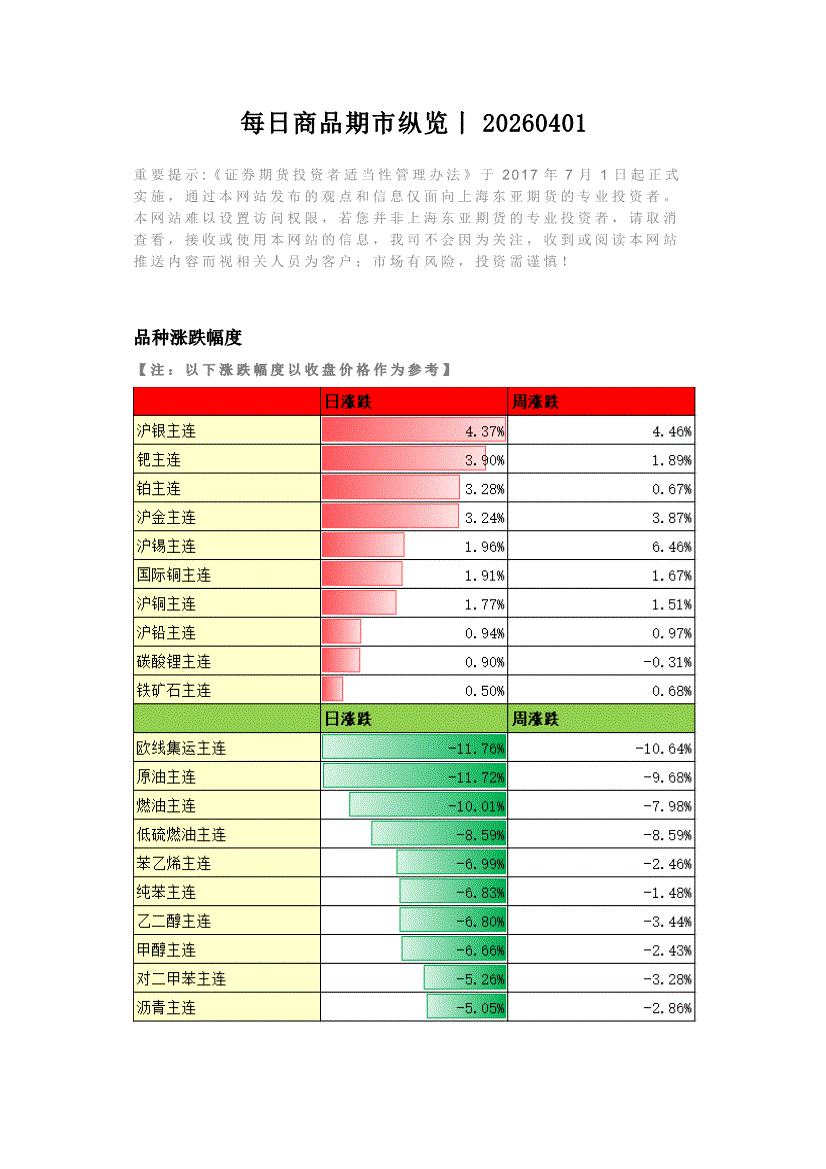 东亚期货-每日商品期市纵览-260401