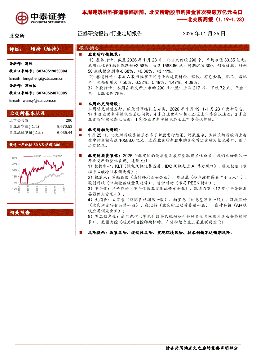 中泰证券-北交所周报:本周建筑材料赛道涨幅居前,北交所新股申购资金首次突破万亿元关口-260126