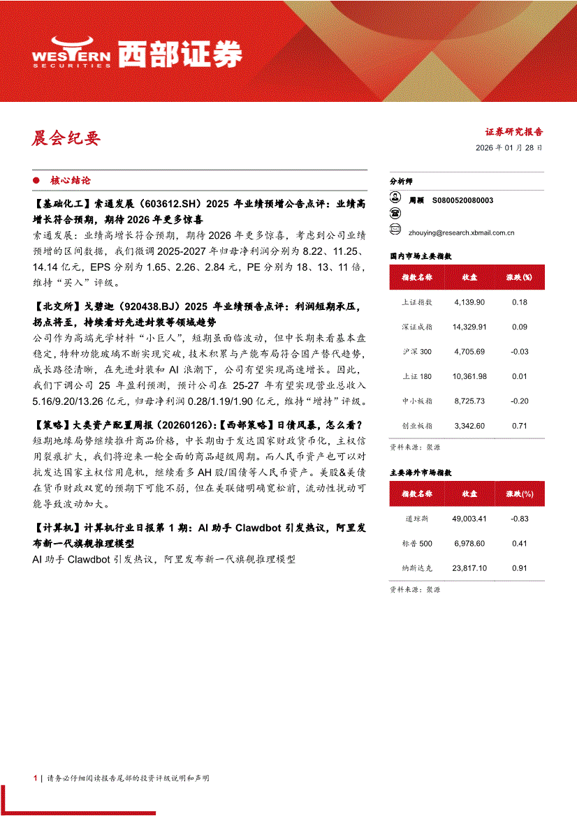 西部证券-晨会纪要-260128