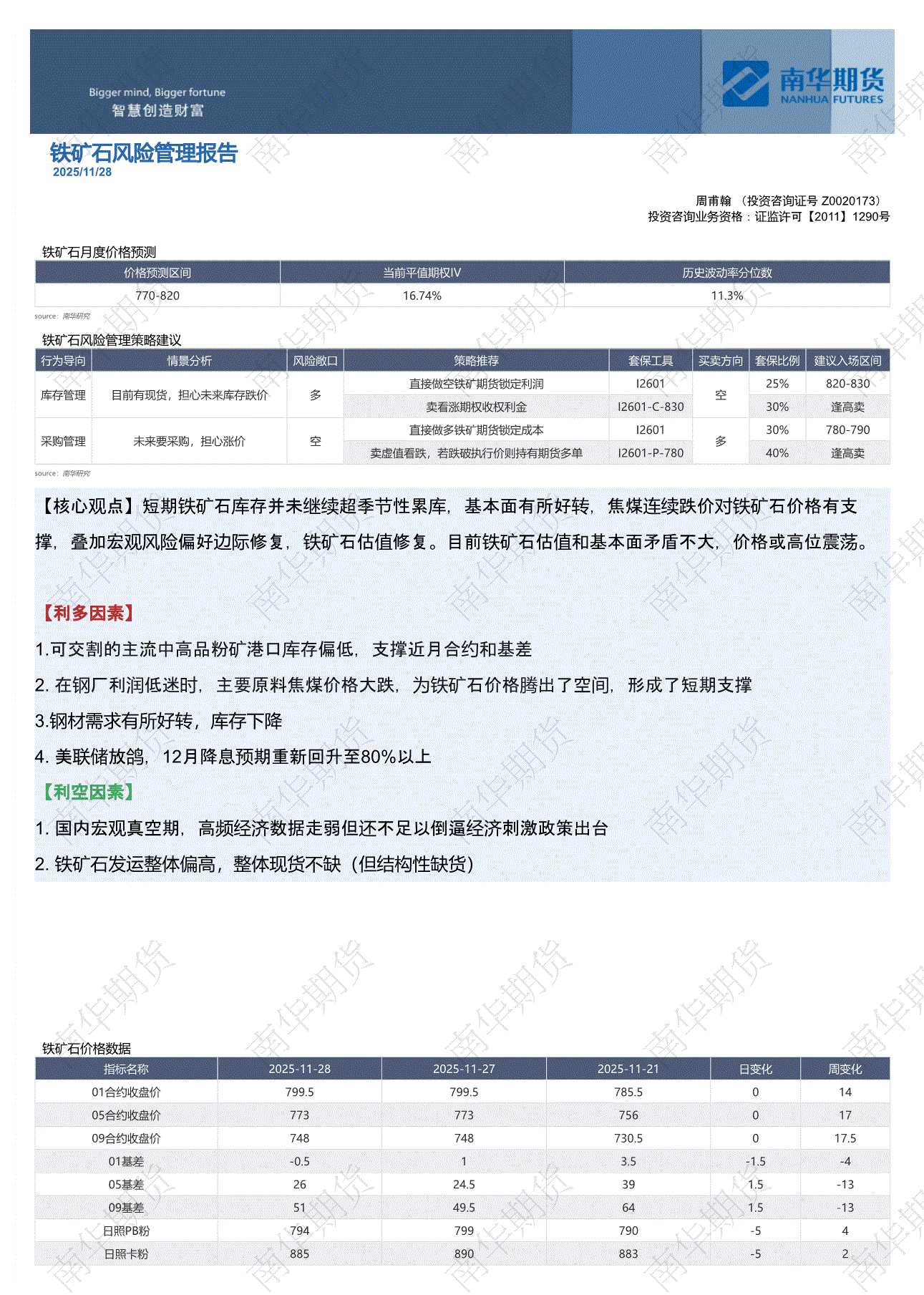 南华期货-铁矿石周报:估值修复,维持高位震荡-251128