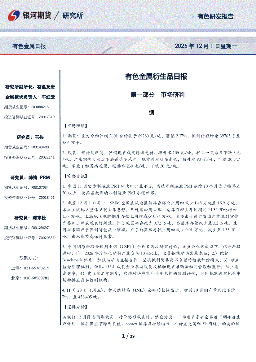 银河期货-铜周报:交割风险提高,铜价再创新高-251208