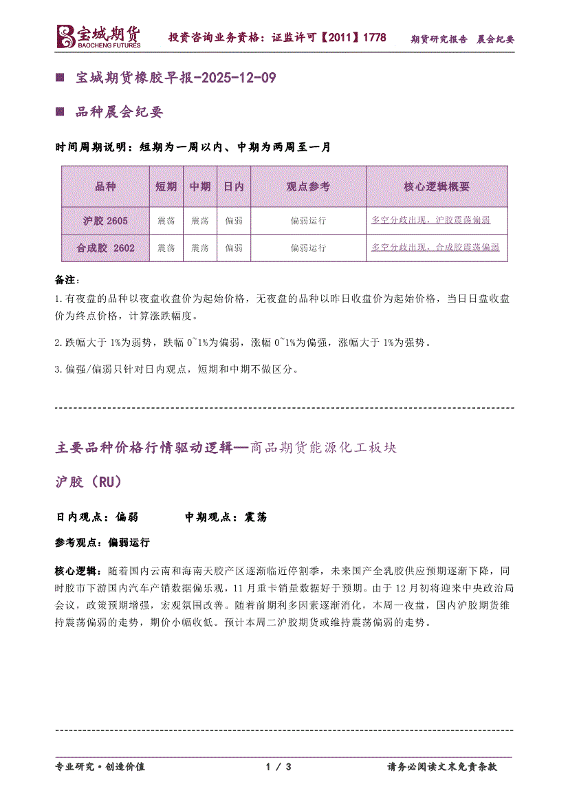 宝城期货-橡胶甲醇原油日报:偏空氛围主导,能化震荡偏弱-251209