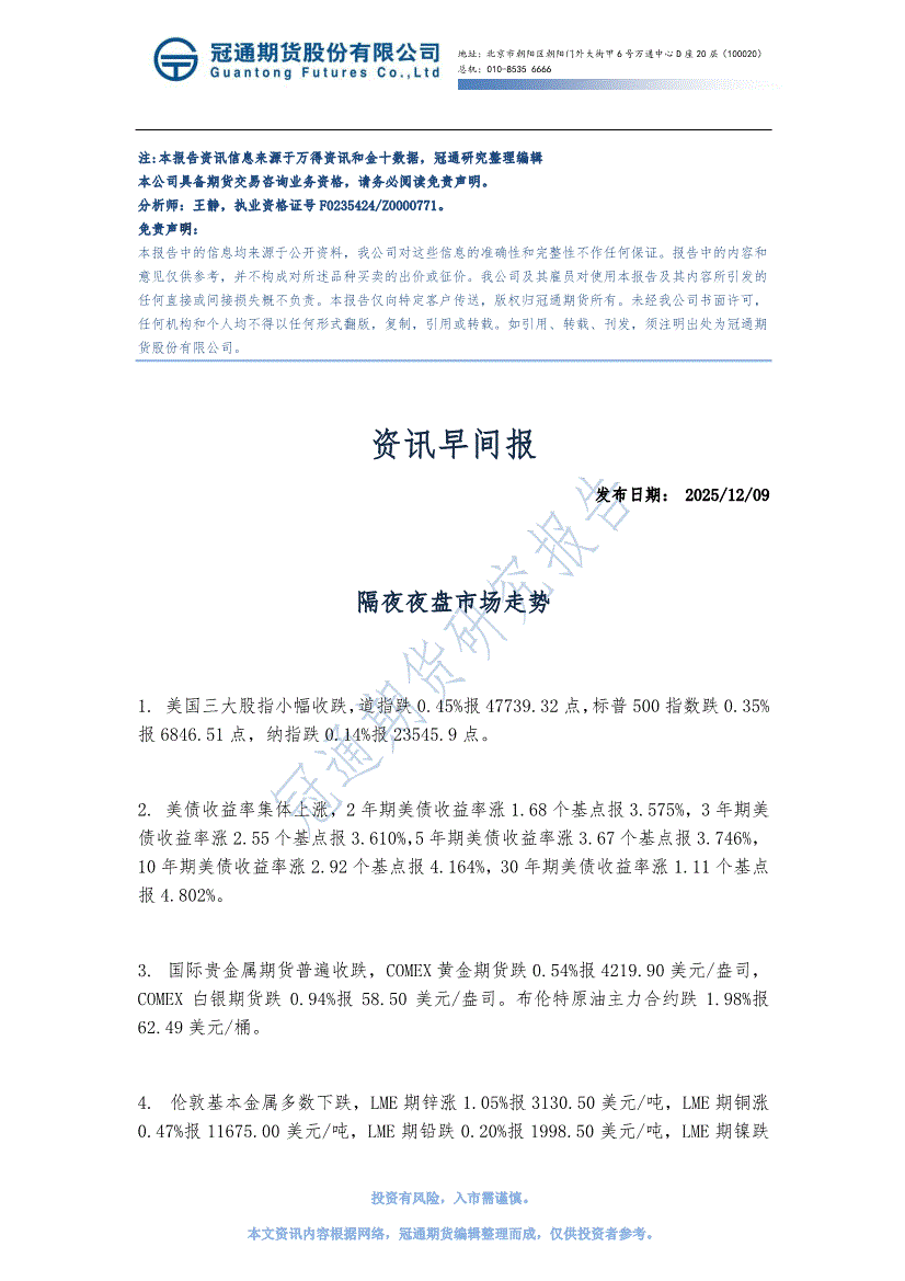 冠通期货-美联储降息会议前,市场交易谨慎-251209