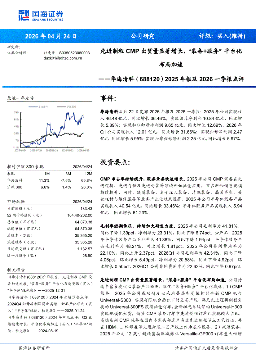 华海清科:国海证券-华海清科-688120-2025年报及2026一季报点评:先进制程CMP出货量显著增长,“装备+服务”平台化布局加速-260425