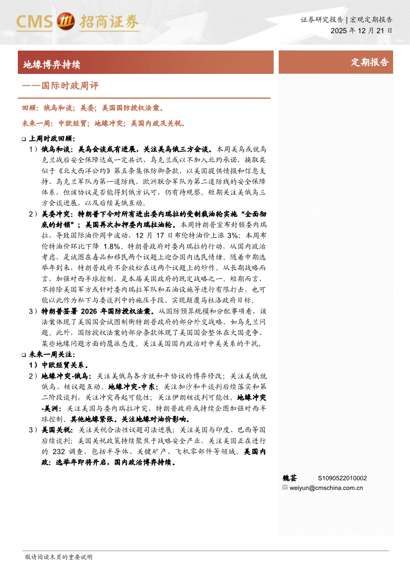 招商证券-国际时政周评:大国协调下的地缘冲突-251214