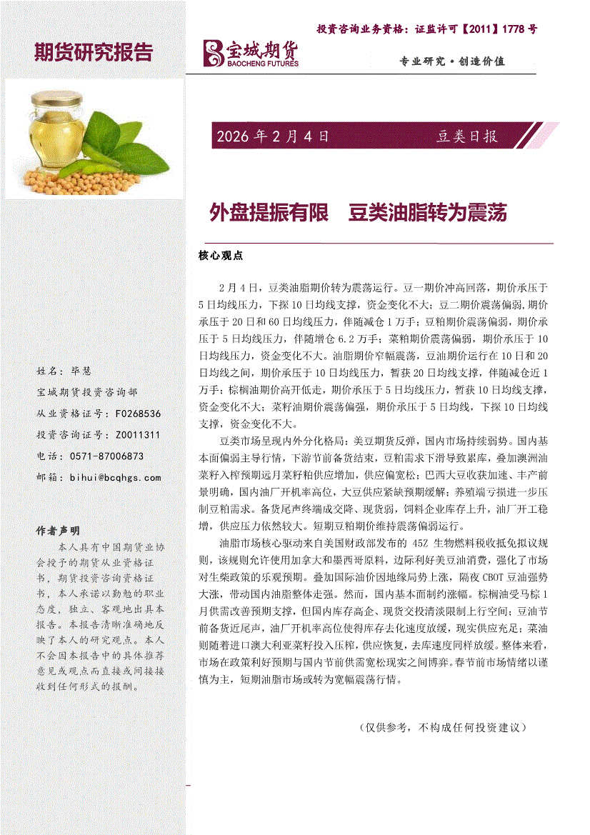 宝城期货-豆类日报:外盘提振有限,豆类油脂转为震荡-260204