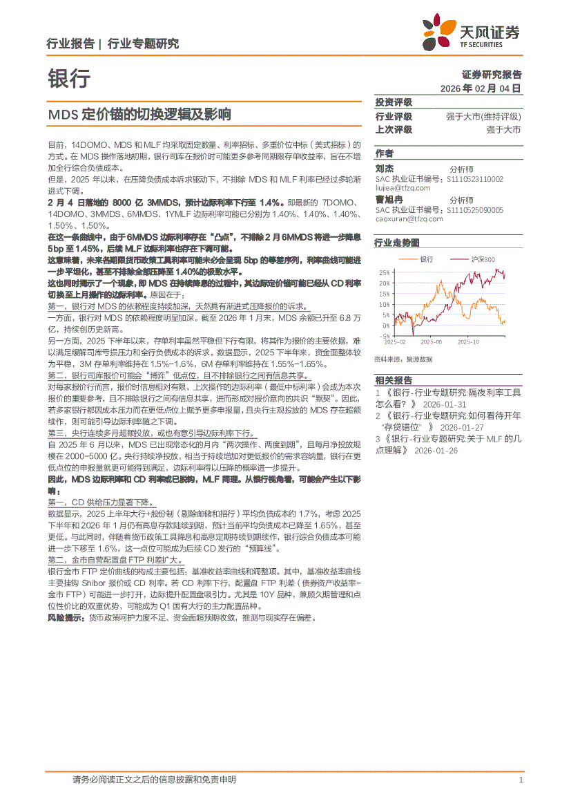 银行业:天风证券-银行业:MDS定价锚的切换逻辑及影响-260204