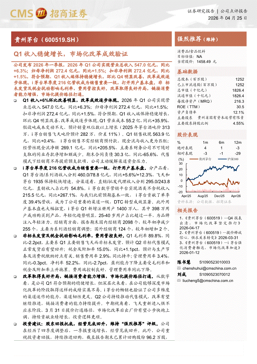 贵州茅台:招商证券-贵州茅台-600519-Q1收入稳健增长,市场化改革成效验证-260425