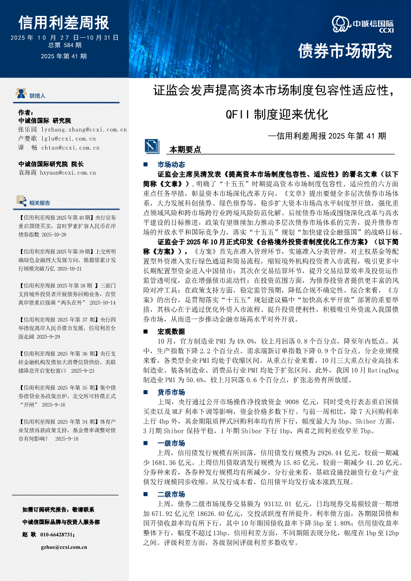 中诚信国际-信用利差周报2025年第41期:证监会发声提高资本市场制度包容性适应性,QFII制度迎来优化-251027