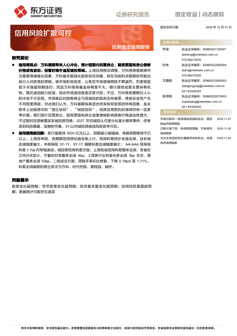 东方证券-信用债市场周观察:信用风险扩散可控-251201