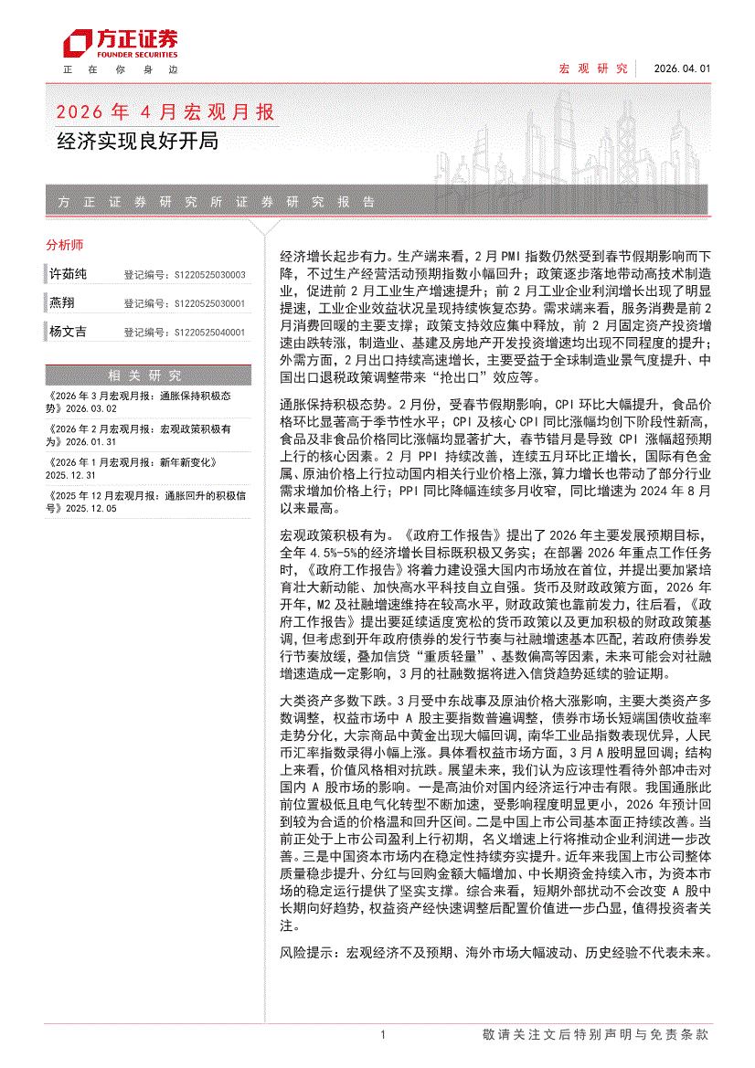 方正证券-2026年4月宏观月报:经济实现良好开局-260401
