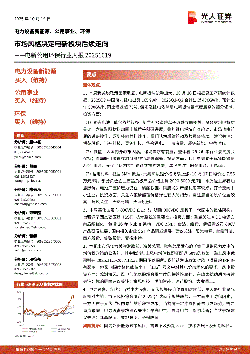电新公用环保行业:光大证券-电新公用环保行业周报:市场风格决定电新板块后续走向-251019