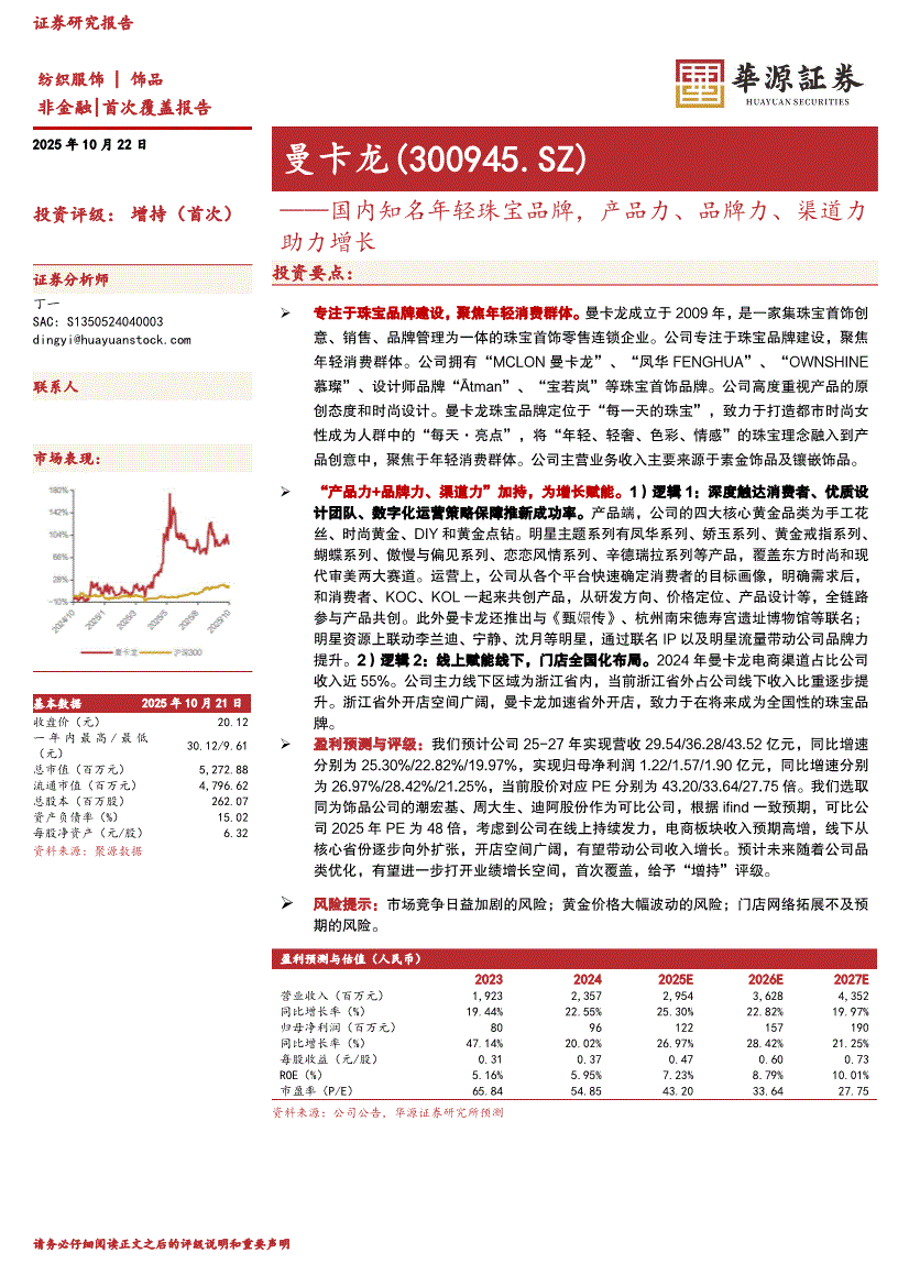 曼卡龙:华源证券-曼卡龙-300945-国内知名年轻珠宝品牌,产品力、品牌力、渠道力助力增长-251022