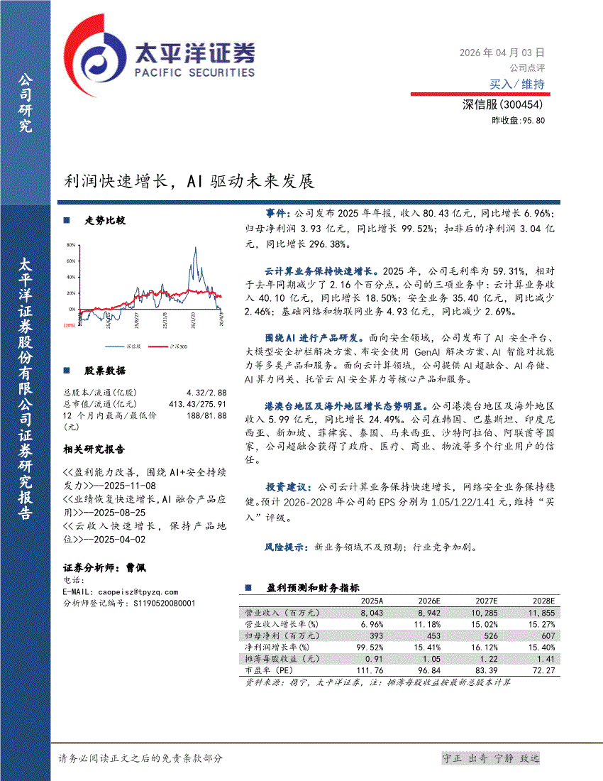 深信服:太平洋证券-深信服-300454-利润快速增长,AI驱动未来发展-260403