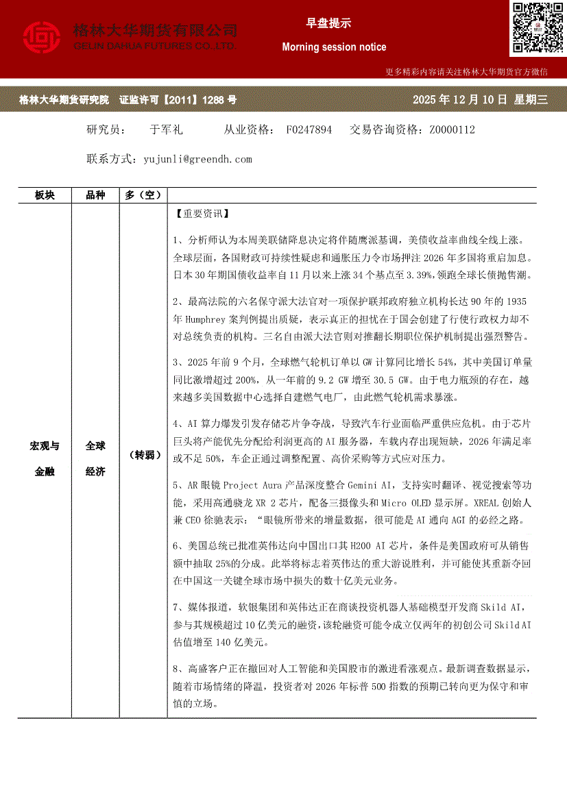 格林大华期货-宏观与金融早盘提示-251215