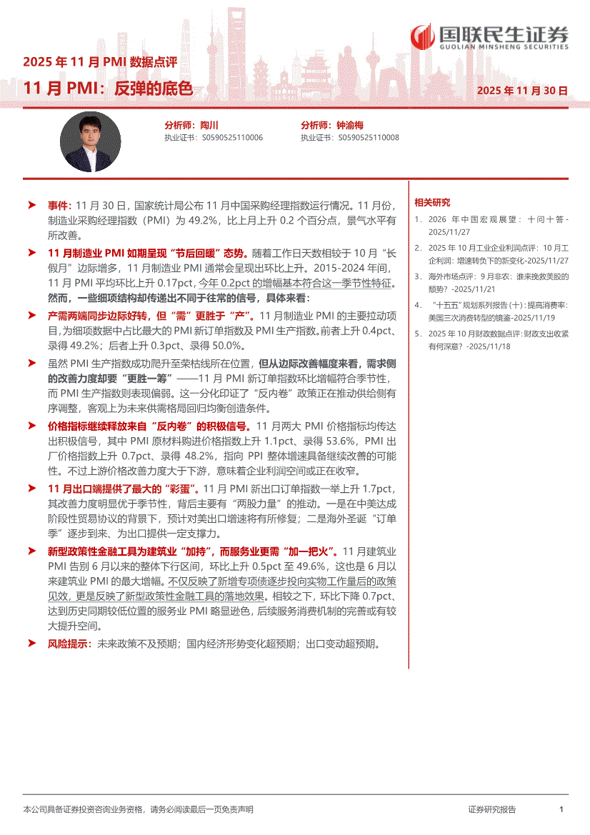 国联民生证券-2025年11月PMI数据点评:11月PMI,反弹的底色-251130