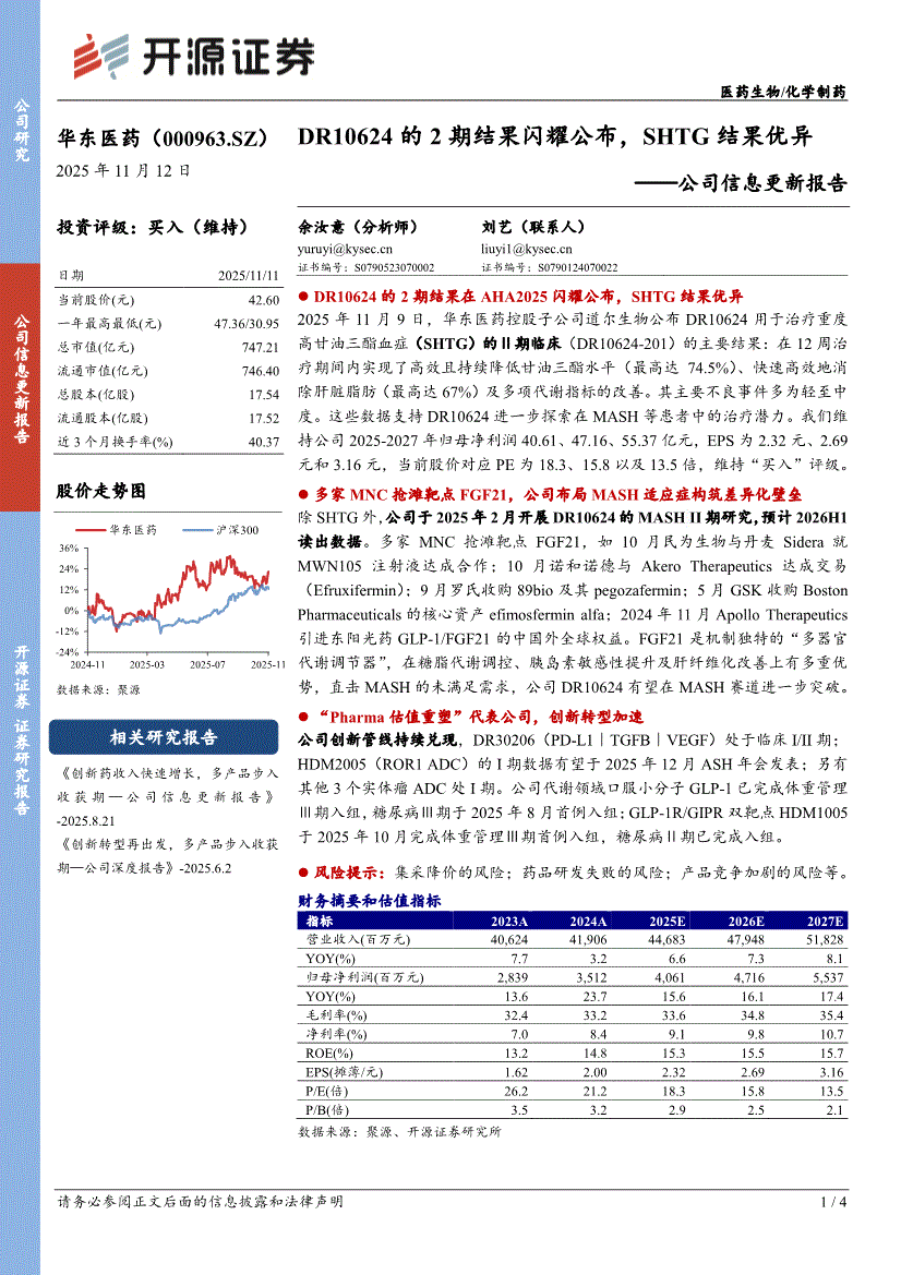 华东医药:开源证券-华东医药-000963-公司信息更新报告:DR10624的2期结果闪耀公布,SHTG结果优异-251112