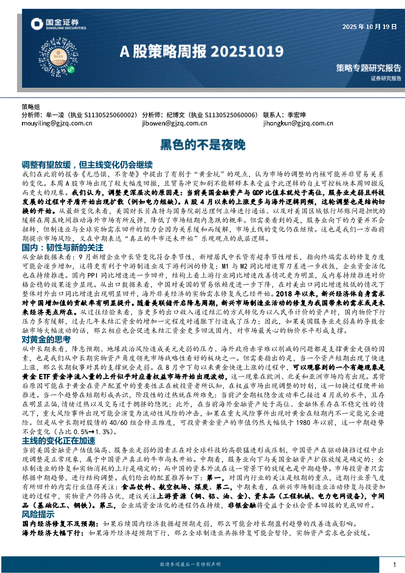 国金证券-A股策略周报:黑色的不是夜晚-251019