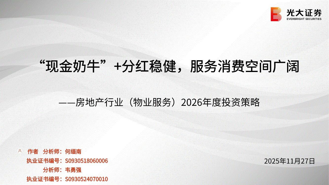 房地产行业:光大证券-房地产行业(物业服务)2026年度投资策略:“现金奶牛”+分红稳健,服务消费空间广阔-251127