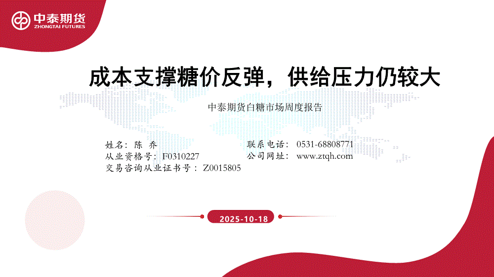 中泰期货-白糖市场周度报告:成本支撑糖价反弹,供给压力仍较大-251018