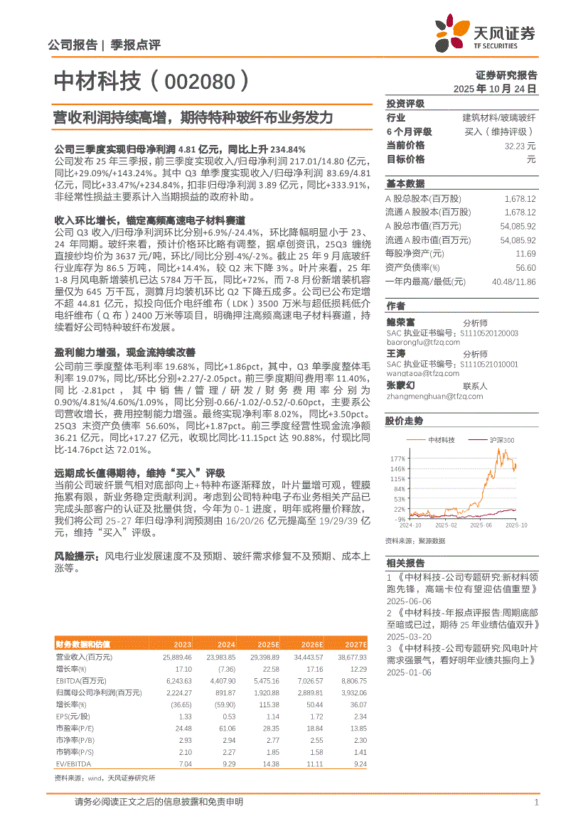 中材科技:天风证券-中材科技-002080-营收利润持续高增,期待特种玻纤布业务发力-251024