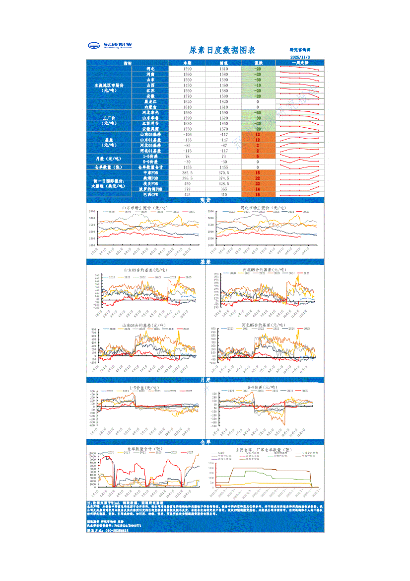 冠通期货-尿素日度数据图表-251103