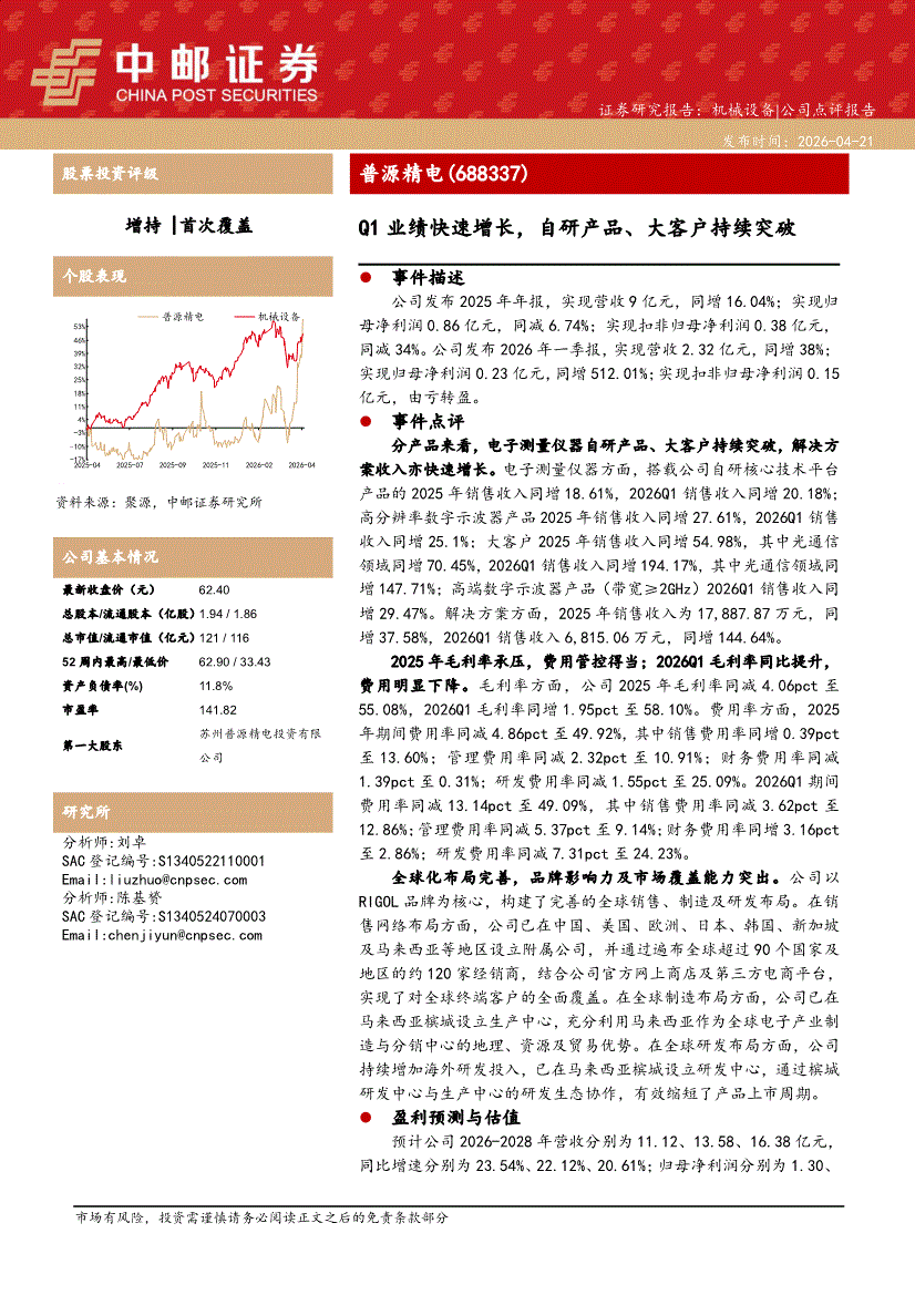 中邮证券-普源精电-688337-Q1业绩快速增长,自研产品、大客户持续突破-260421