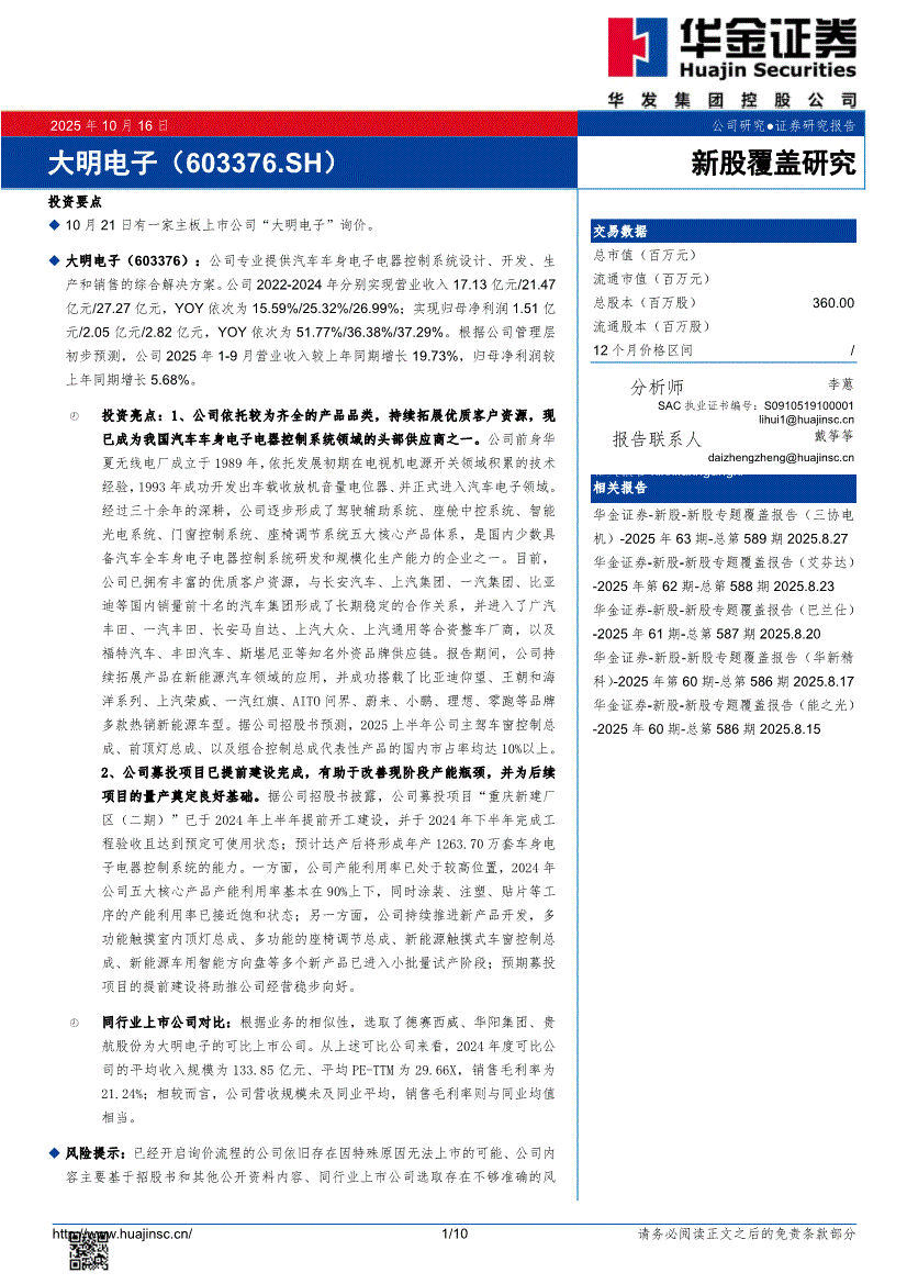 大明电子:华金证券-大明电子-603376-新股覆盖研究-251016