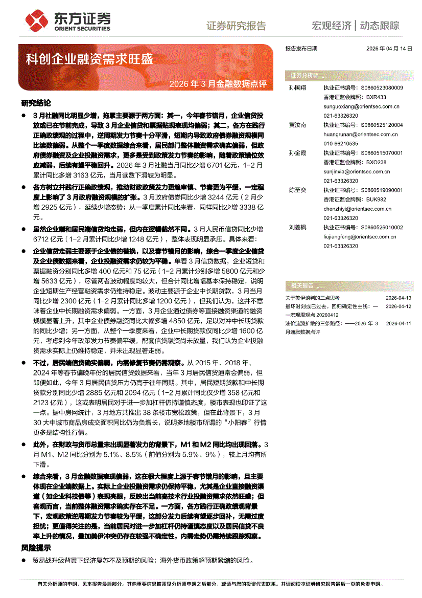 东方证券-2026年3月金融数据点评:科创企业融资需求旺盛-260414