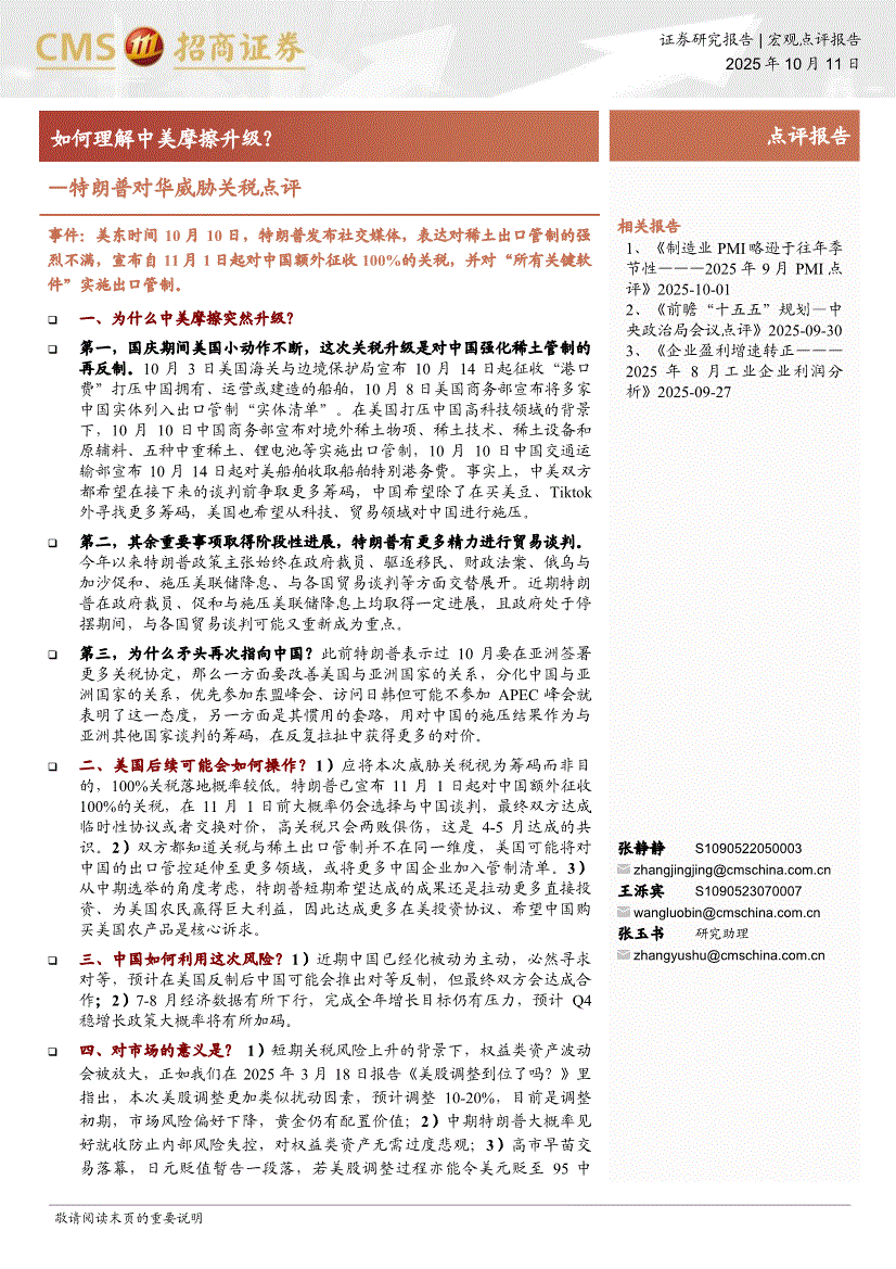 招商证券-特朗普对华威胁关税点评:如何理解中美摩擦升级?-251011