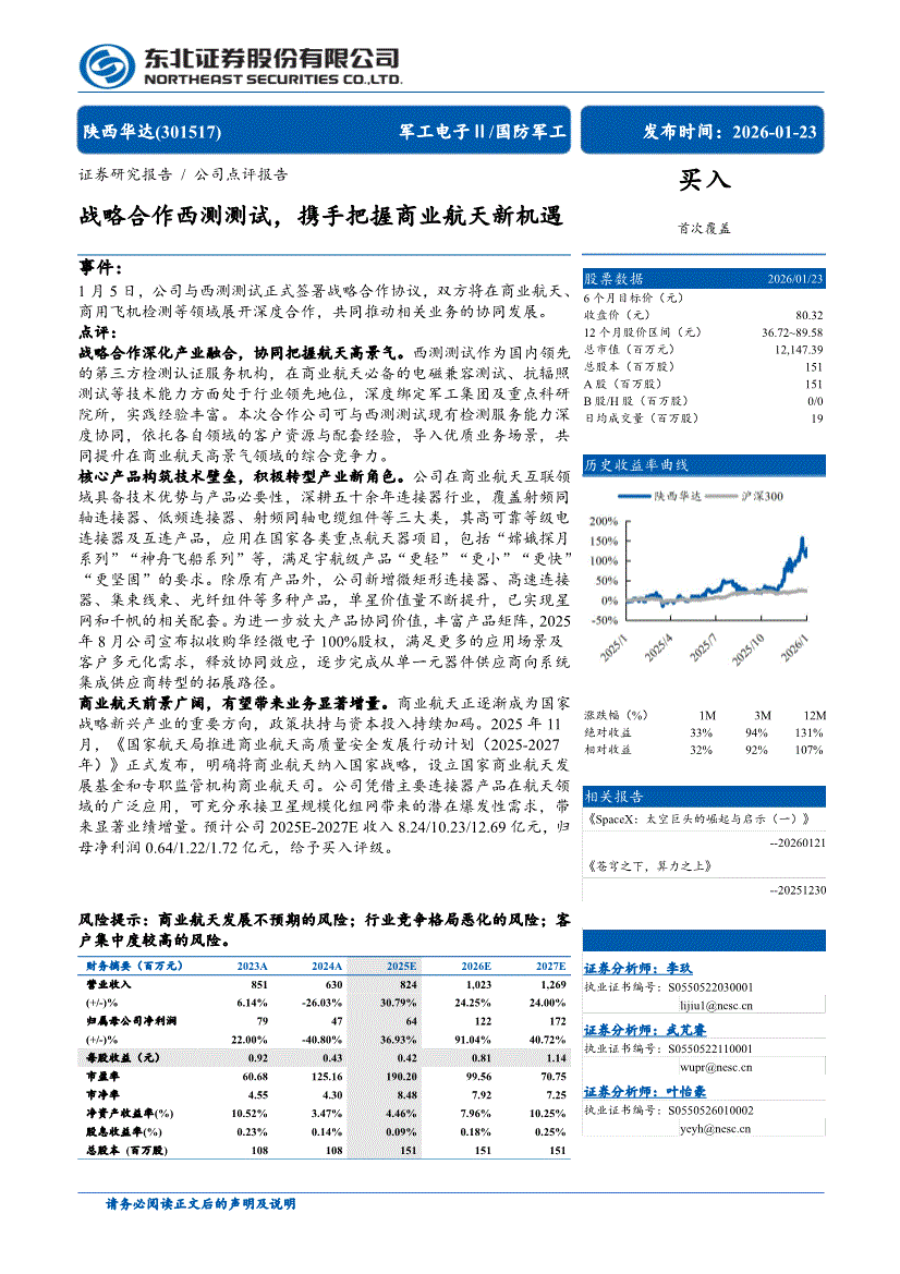 陕西华达:东北证券-陕西华达-301517-战略合作西测测试,携手把握商业航天新机遇-260123