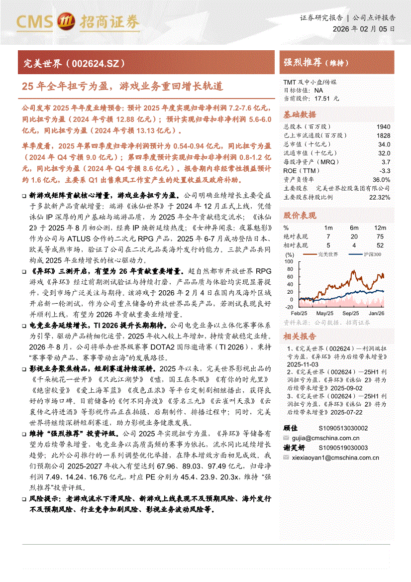 完美世界:招商证券-完美世界-002624-25年全年扭亏为盈,游戏业务重回增长轨道-260205