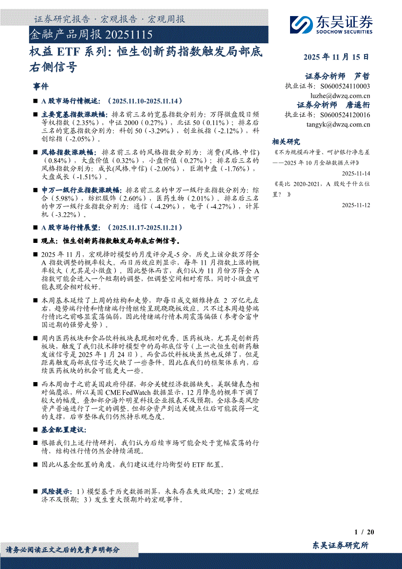 东吴证券-金融产品周报:权益ETF系列,恒生创新药指数触发局部底右侧信号-251115