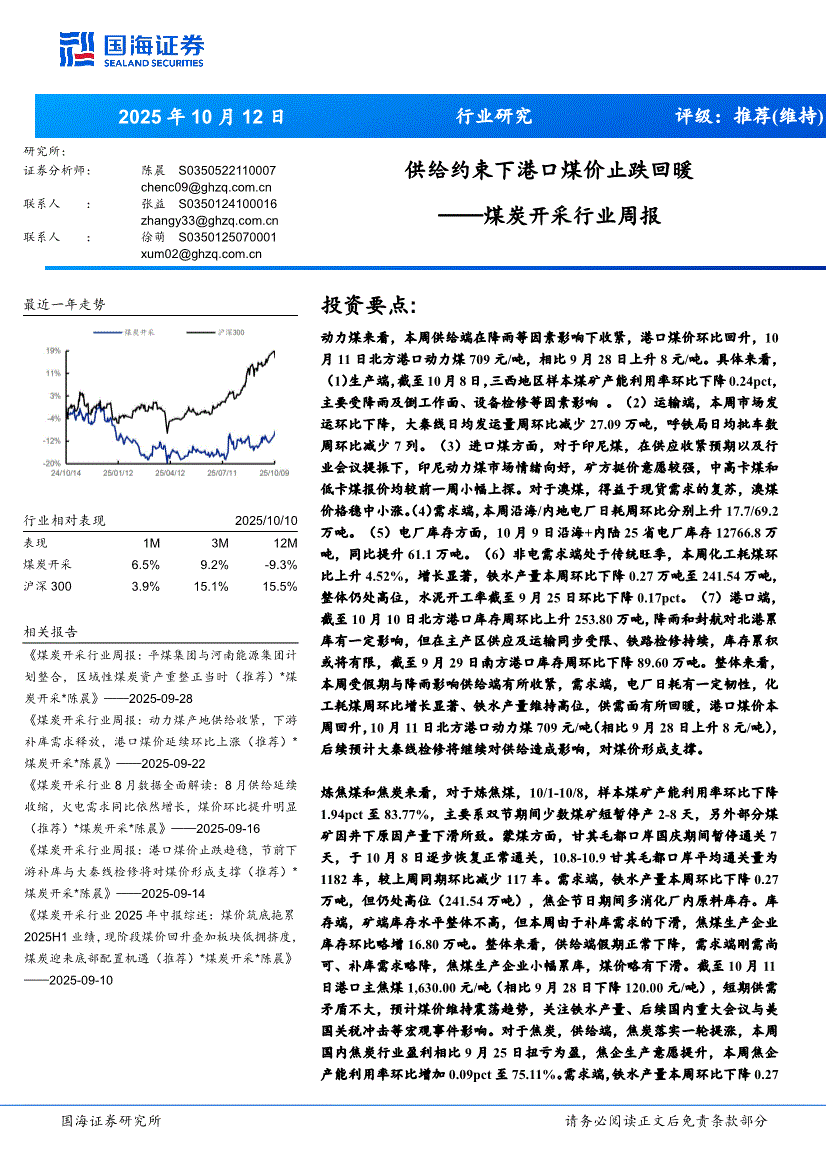 煤炭开采行业:国海证券-煤炭开采行业周报:供给约束下港口煤价止跌回暖-251012