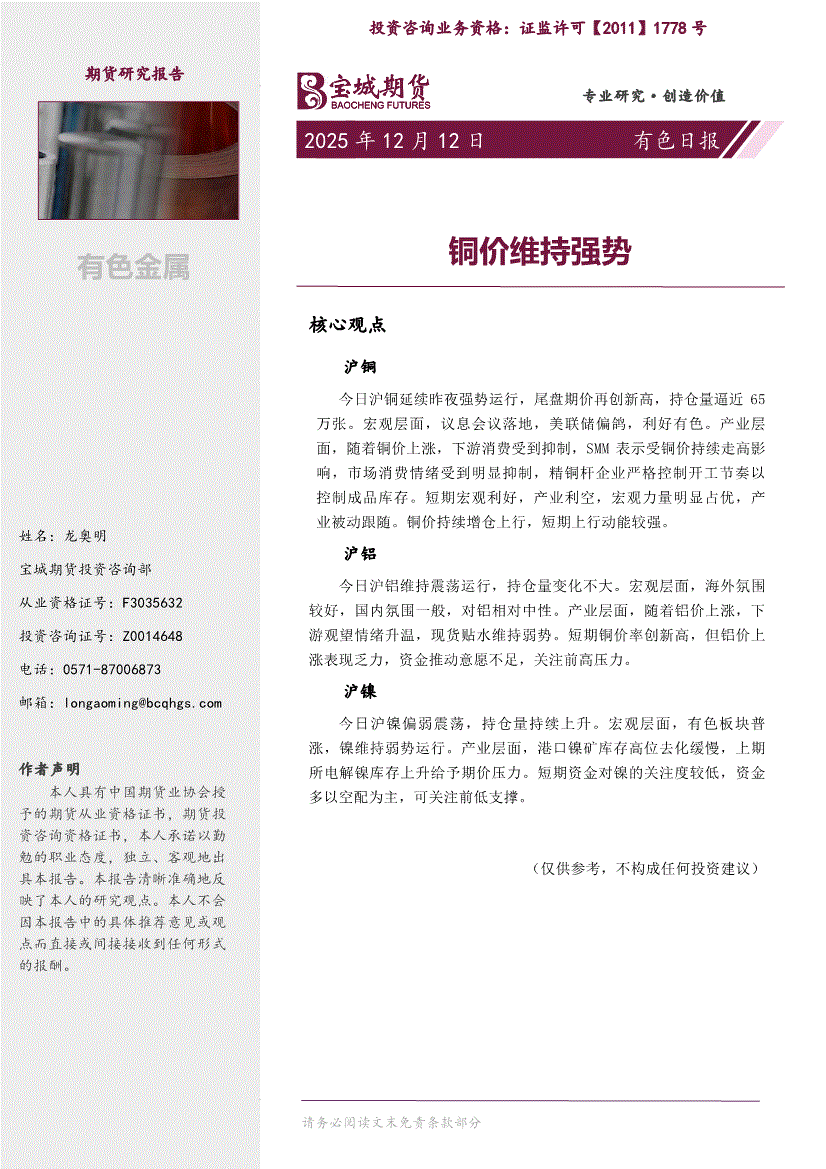 宝城期货-碳酸锂日报:碳酸锂小幅上涨-251208
