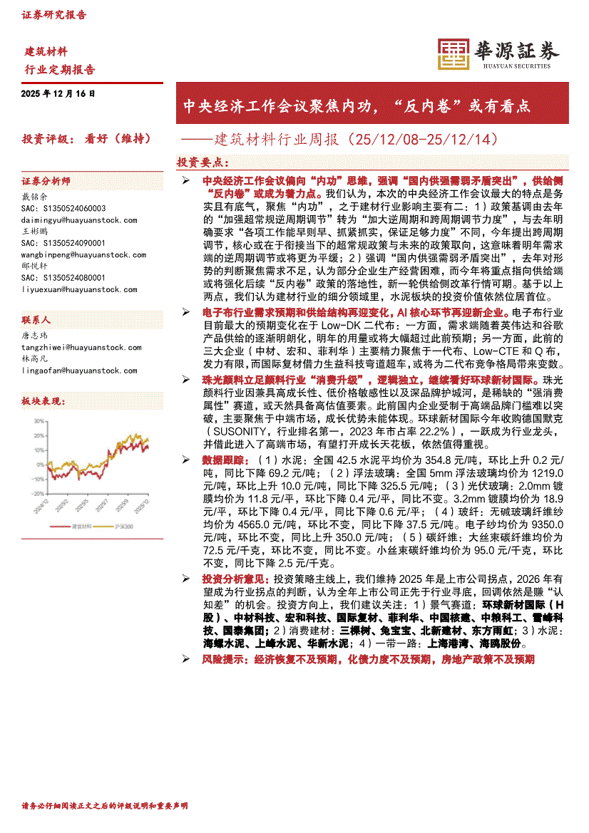 建筑材料行业:华源证券-建筑材料行业周报:中央经济工作会议聚焦内功,“反内卷”或有看点-251216