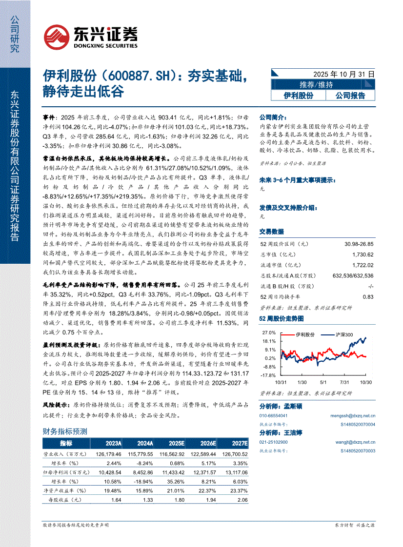 伊利股份:东兴证券-伊利股份-600887-夯实基础,静待走出低谷-251031