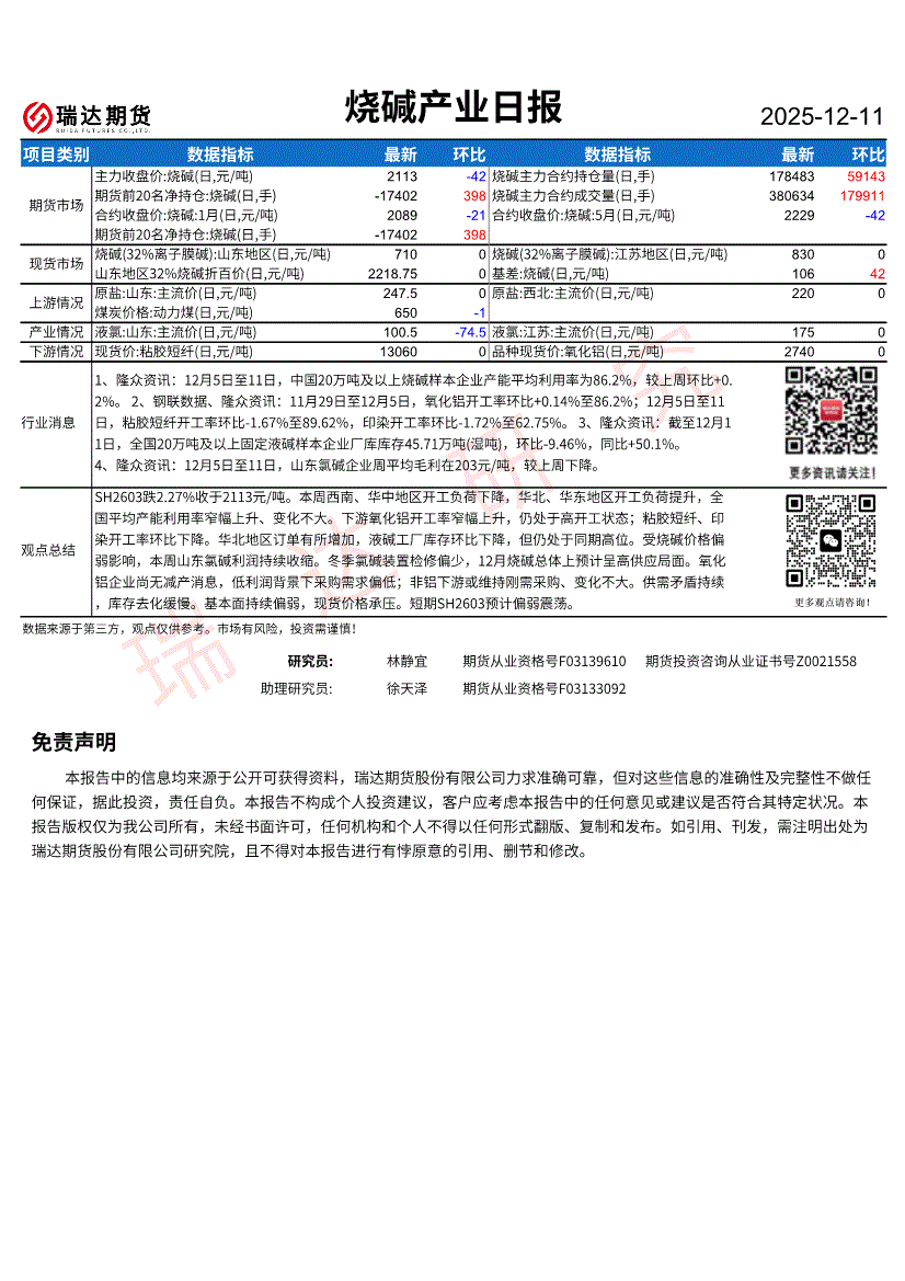 瑞达期货-烧碱产业日报-251211