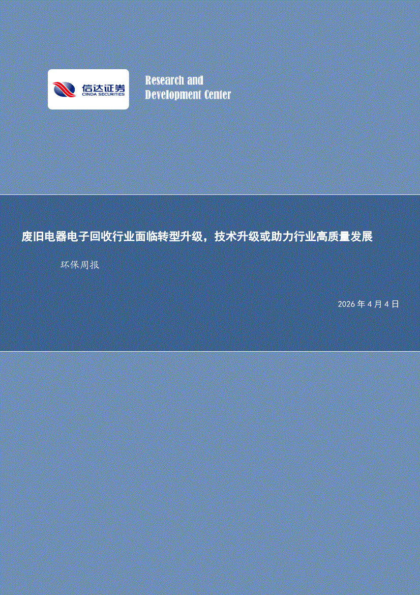 环保行业:信达证券-环保行业周报:废旧电器电子回收行业面临转型升级,技术升级或助力行业高质量发展-260404